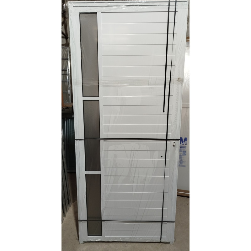A porta de alumínio lambril com vidro possui um design elegante e moderno, ideal para trazer sofisticação e luminosidade para o ambiente. Com 2,10m de altura e 0,80m de largura, é perfeita para instalação em diversos tipos de ambientes. Possui puxador para facilitar a abertura e fechamento, além de abertura para a esquerda. Fabricada com materiais de alta qualidade, garantindo durabilidade e resistência. Adquira já a sua porta de alumínio lambril e transforme a sua casa ou escritório!