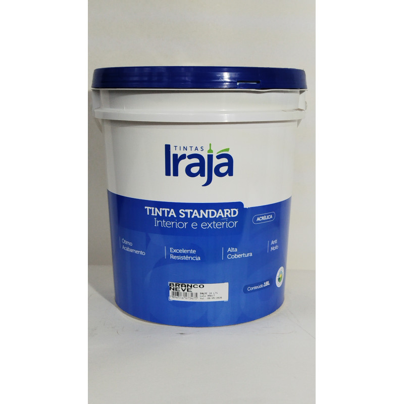 A IRAJA ACRIL STANDARD BRANCO 18L é uma tinta acrílica de excelente qualidade, desenvolvida para proporcionar uma cobertura uniforme e duradoura em superfícies internas e externas. Com alto poder de aderência e resistência, esta tinta é ideal para renovar e proteger paredes, portas, janelas e outras superfícies. Além disso, seu acabamento fosco confere um aspecto elegante e sofisticado aos ambientes. Com a IRAJA ACRIL STANDARD BRANCO 18L, você terá resultados profissionais em suas pinturas.